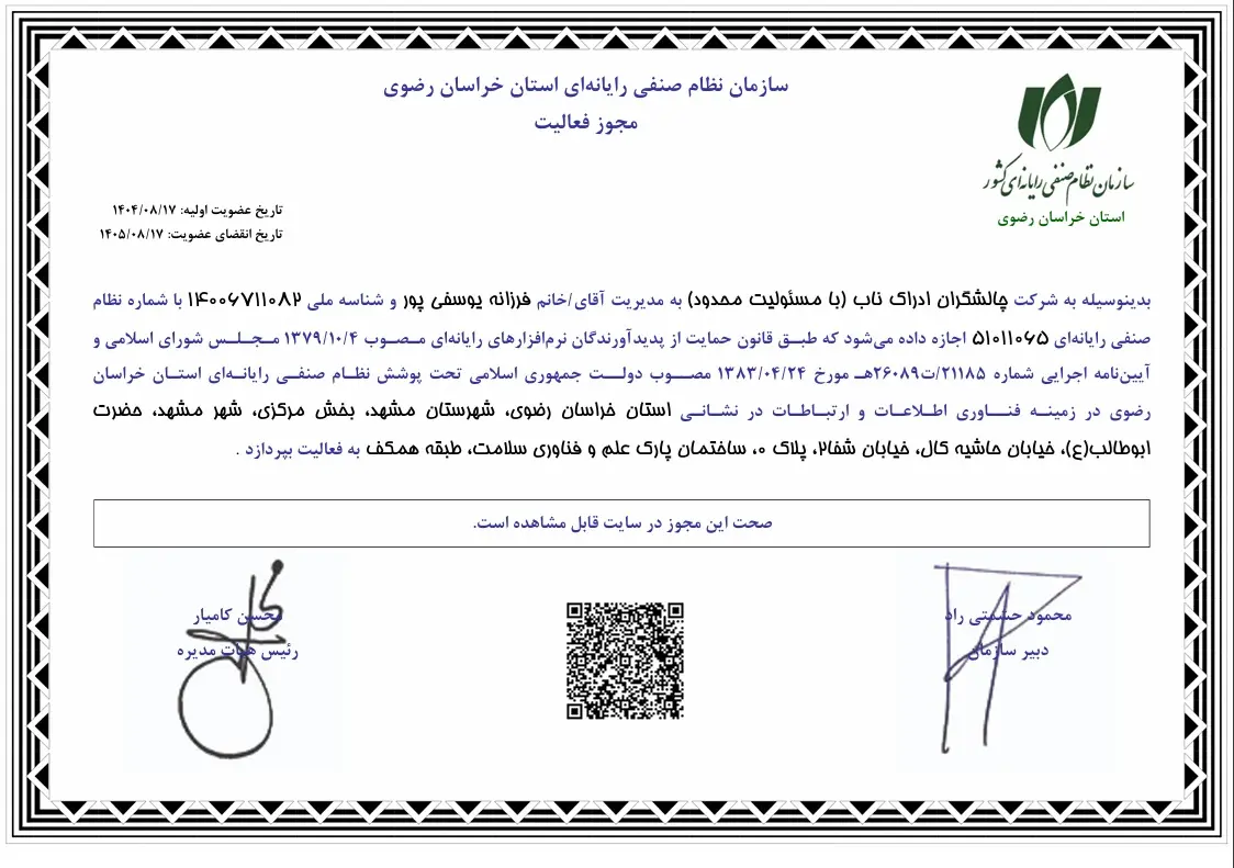 تمامی حقوق متعلق به شرکت چالشگران ادراک ناب میباشد.